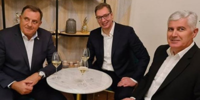 Predsednik Srbije Aleksandar Vučić sastao se večeras u Beogradu sa srpskim članom Predsedništva BiH Miloradom Dodikom i zamenikom predsedavajućeg Doma naroda Parlamentarne skupštine BiH Draganom Čovićem, koji je danas boravio u poseti Republici Srbiji