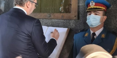Nakon polaganja venca, predsednik Vučić upisao je u spomen-knjigu: