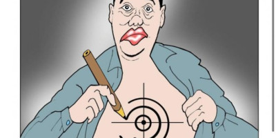 Tako je "Danas" objavio njegovu karikaturu na kojoj Vučić sam sebi crta metu na grudima, kao da žele da poruče da će u slučaju da se predsedniku nešto desi, reći da je sam kriv za to!