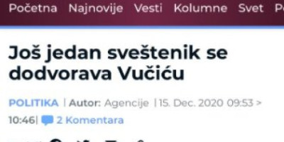 Tako su vest o izjavi episkopa bihaćko-petrovačkog Sergija, u kojoj je obajsnio koju poruku možemo izvući iz svakodnevnih napada na predsednika Vučića, naslovili: "Još jedan sveštenik se dodvorava Vučiću".