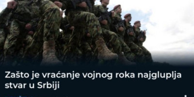 Opozicioni portal Nova S objavio je danas vest pod naslovom Zašto je vraćanje vojnog roka najgluplja stvar u Srbiji potvrđujući tako da onima koje oni podržavaju smeta stabilna i jaka Srbija.
