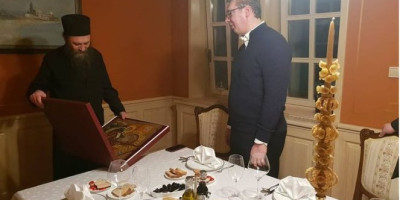 Predsednik Vučić je večerao u društvu igumana manastira Hilandar Metodija.