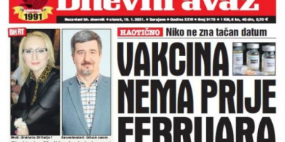 Naslovna strana bosanskog dnevnog lista Dnevni avaz pokazuje nezavidnu situaciju u kojoj se zemlja nalazi, jer vakcina još uvek nema ni na vidiku.