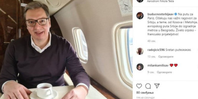 - Na putu za Pariz. Očekuju nas važni razgovori za Srbiju, a teme, od Kosova i Metohije, evropskog puta Srbije do izgradnje metroa u Beogradu. Živelo srpsko - francusko prijateljstvo! - napisao je Vučić.