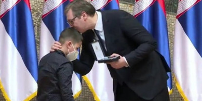 Predsednik je dečaku dao orden i poljubio ga u glavu.