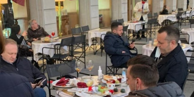 Ova ekipa je, kako se vidi na fotografijama, susret upričila u restoranu, gde su razgovarali uz piće i hranu...