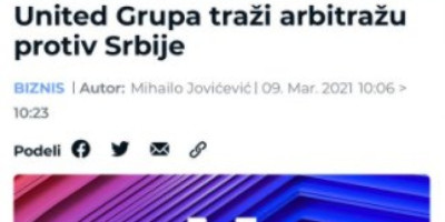United Grupa i dve njene kompanije, podnele su arbitražni zahtev Međunarodnom centru za rešavanje investicionih sporova (ICSID) u Vašingtonu, u kojem se tvrdi da je država Srbija prekršila nekoliko obaveza iz bilateralnog sporazuma o investiranju sa Holandijom, saopšteno je danas iz te grupe.