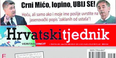 Nedeljni list 'Hrvatski tjednik' objavio je naslovnu stranu na kojoj doslovce piše: 'Crni Mićo, lopino, UBIJ SE!', čime se direktno poziva na ubistvo Milorada Pupovca.