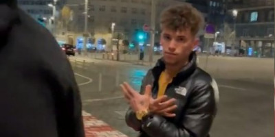 Dvojica mladića su u centru Beograda na Trgu republike, kod Narodnog pozorišta, pokazivali dvoglavog orla, a jedan od njih je sve to snimio i objavio na društvenoj mreži TikTok