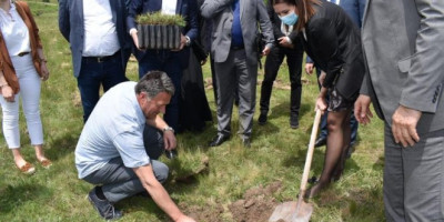 Ona je, obilazeći lokaciju u blizini manastira „Đurđevi stupovi“ na kojoj je već zasađeno oko 15.000 novih stabala, istakla da je to izuzetno važna akcija i da će se raditi na pošumljavanju i ozelenjavanju u još oko 40 jedinica lokalne samouprave. Foto: Ministarstvo za zaštitu životne sredine