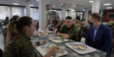 Potpredsednik Vlade i ministar odbrane dr Nebojša Stefanović obišao je danas učenike Vojne gimnazije i Srednje stručne vojne škole, kojima se pridružio i na doručku u vojnom internatu