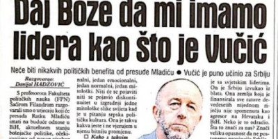 Mislim da srpsko rukovodstvo, a i rukovodstvo RS, treba da nađe način da uspostavi kontakt i saradnju sa Bošnjacima u Federaciji kako bi se prevazišle podele i sukobi koje inicira SDA. Očigledno je da takve snage u Federaciji postoje i da bi time svi, i Bošnjaci i Srbi, usli u zonu saradnje, a ne konfrontacije, a ekstremisti na čelu sa Izetbegovićem i Cerićem bili marginalizovani.