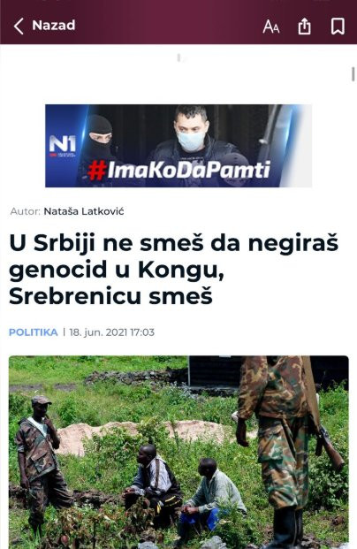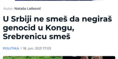 Oni su objavili vest sa naslovom "U Srbiji ne smeš da negiraš genocid u Kongu, Srebrnicu smeš".