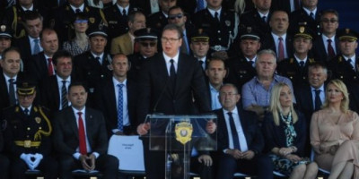 "Vi ste ti koji čuvate i štitite državu, a ne postoji ništa teže od toga, jer ne postoji ništa popularnije nego za sve kriviti tu istu državu. I zato vam veliko hvala što obavljate najteži posao, što se na dnevnom nivou suočavate sa ubicama, razbojnicima, onima koji našoj deci daju drugu i ubijaju našu budućnsot", poručio je predsednik Srbije.