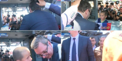 Predsednik Srbije Aleksandar Vučić tokom prikaza sredstava naoružanja i vojne opreme iz domaće odbrambene industrije u Spomen parku "Šumarice" u Kragujevcu prišao je dečaku koji je sa zastavom Srbije u ruci stajao u helikopteru. Dok je razgovarao sa dečakom, Vučić nije ni slutio opasnost koja mu preti...