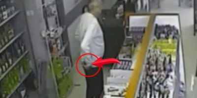 On je slatkiše gurao u pantalone i džepove, iako je naspram njega bio muškarac, koji je ušao u radnju.