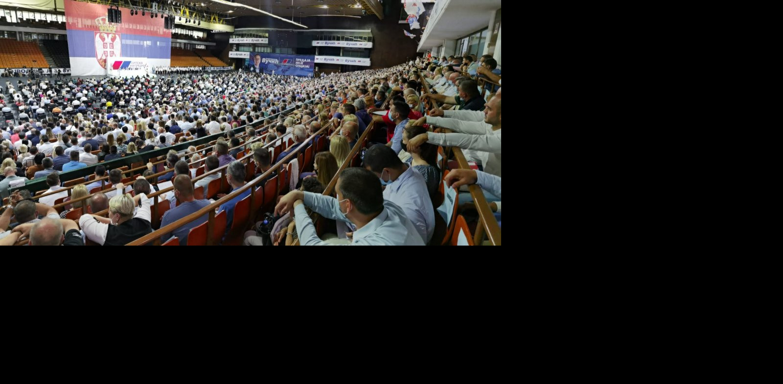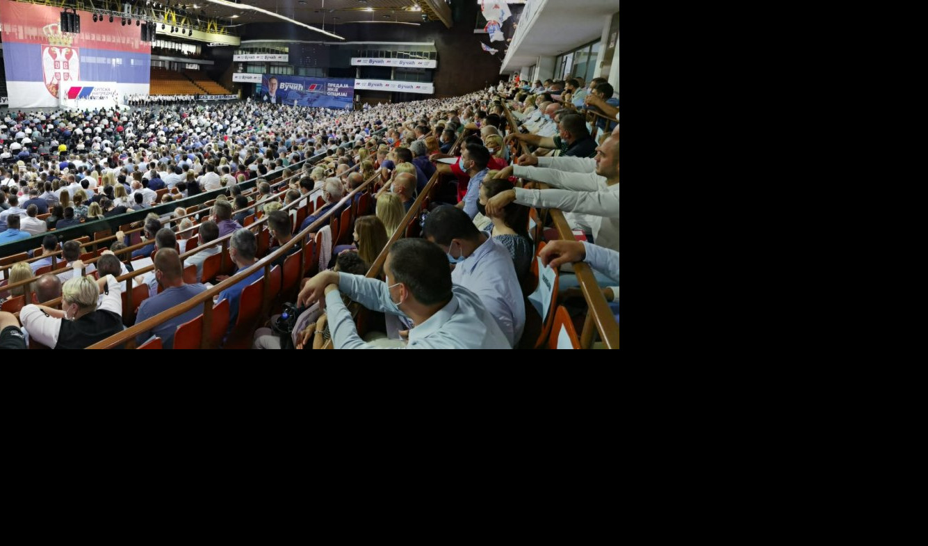 Skup se održava u prepunoj dvorani Spensa u prisustvu više hiljada ljudi koji su aplauzom pozdravili dolazak Vučića.