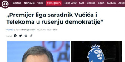 Sudeći po ovom portalu, to što se engleska Premijer liga prenosi na kanalima Arena Sporta koji su dostupni preko Telekom operatera, znači "rušenje demokratije".