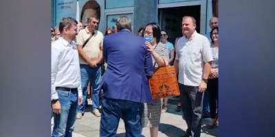 Predsednik je izašao da se pozdravi sa okupljenim građanima i zahvalio se na dočeku.