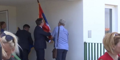 - Zastava ne sme da bude dole, mora uvek ponosno da vijori - rekao je Selaković, nameštajući zastavu, nakon čega se vratio i nastavio davanje izjava.