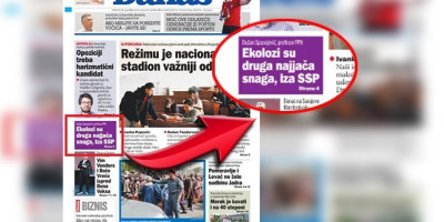 Namera im je da birače Ne davimo Beograd i ostalih ekologa priklone Draganu Đilasu, pa su tako, na naslovnoj strani sutrašnjih novina, objavili naslov "Ekolozi su druga najjača stranka, iza SSP".