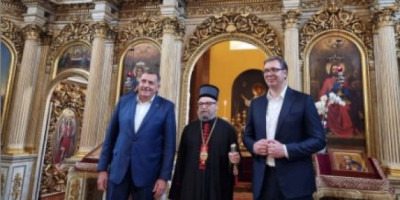 Predsednika Srbije u crkvi Svetog Đorđa u Budimpešti dočekao je vladika budimski Lukijan.