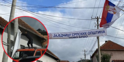 Pripadnici specijalne policije ROSU skinuli su danas transparent sa natpisom "Dobrodošli u Zajednicu srpskih opština" koji je noćas postavljen u selu Gornje Kusce u opštini Novo Brdo
