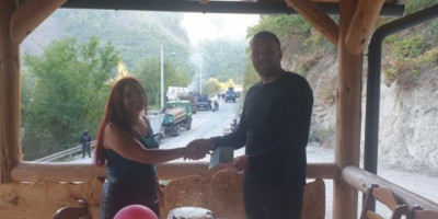 Poslanik Miloš Perović, koji je čuo je za ovu priču, odlučio da Sandri u ime Opštine Zubin Potok spremi poklon i svečano joj uruči baš tu na blokadi, dok iza njih stoje naoružani specijalci.