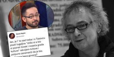 "Jao, je l' to sad treba i o Tasovcu pisati tugaljive otišo si, a bio si poznat čovek i noseća greda kulture rekvijem-tvitove i potpuno zanemariti da je bio ordinarna kaca g....a?", napisao je on na Tviteru.
