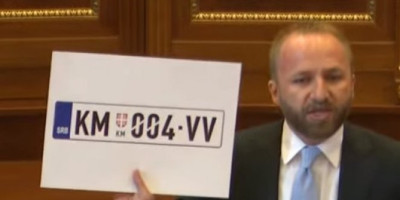 "Vlada je prihvatila da se ove registarske tablice legalno izdaju Kosovu. Ovo je prvi korak koji ste započeli sa implementacijom Asocijacije sa izvršnim ovlašćenjima. Dve decenije nije bilo štetnijeg posla od ovoga. Vučić u Srbiji dobija pet evra, a Aljbin sa svojim ministrima pet evra sa ovim nalepnicama", rekao je Tahiri.