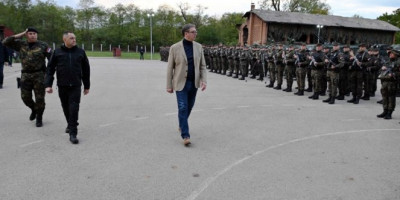 Čuvaćemo mir i stabilnost gotovo po svaku cenu. Ako ne budemo imali izlaza, ako nas napadnu, ako nam budu ubijali ljude, kao što su to danas zamalo učinili, onda ćemo morati da zaštitimo naš narod. A ono što vam ja kažem, to da zaštitimo naš narod značiće da ćemo da pobedimo. Nema predaje, nema povlačenja“, rekao je predsednik Vučić, koga su pripadnici kraljevačkog Odreda Žandarmerije pozdravili himnom svoje jedinice „Hriste Bože“.