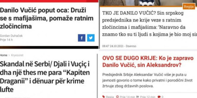 Na naslovima njihovih vesti poručuju da je Danilo kao i otac, da se druži sa mafijašima i pomaže ratnim zločincima.