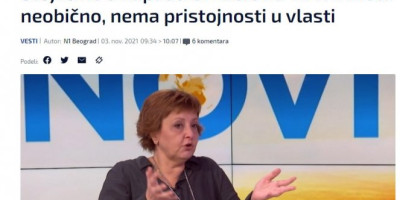 Tako je Biljana Stojković, profesorka beogradskog Univerziteta i članica skupštine "Slobodne Srbije", za nepristojan gest novinarke N1 optužila, a koga bi drugo, premijerku Brnabić i aktuelnu vlast u Srbiji.