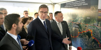 Predsednik Srbije Aleksandar Vučić prisustvovao je ceremoniji obeležavanja početka izgradnje brze saobraćajnice Požarevac - Veliko Gradište - Golubac (Dunavski koridor)