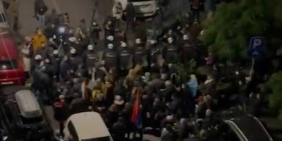 Okupljeni vređaju policiju, govore im da su plaćenici i da se plaše naroda