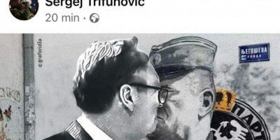 Potrčko Dragana Đilasa, Sergej Trifunović, "junački" je danas na društvenim mrežama objavio montažu murala na kojoj se vide predsednik Srbije Aleksandar Vučić i general Ratko Mladić