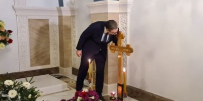 Vučić je posetio Hram Svetog Save na Vračaru, gde počiva patrijarh Irinej, a na svom Instagram nalogu je objavio fotografije i video-snimak.