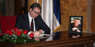 Po dolasku, predsednik Srbije se upisao u Knjigu žalosti.