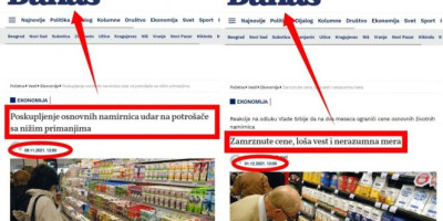 Dnevni list "Danas" 08.11.2021. kuka na poskupljenje osnovnih namirnica, a manje od mesec dana kasnije, kad je Vlada zamrzla cene kako usled svetske infalcije ne bi više rasle, onda isti taj "Danas" kaže da je to "LOŠA VEST I NERAZUMNA MERA"!