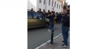Zamolio je protestante da ga puste da prođe. Oni nisu hteli, a kada se vratio u automobil i krenuo, počeli su da mu urnišu vozilo.