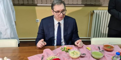 Predsednik je isprobao pojedine proizvode Jumisa, supu sa vrganjima, zatim supu sa spanaćem, paradajzom i druge.