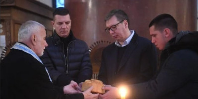 - Srećna slava svima koji slave Svetog Nikolu! Sa Andrejem i Danilom, kao i svake godine, u crkvi Svetog Marka - napisao je predsednik Vučić na Instagramu.