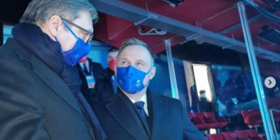 - Sa predsednikom Poljske Andžejem Dudom u prijateljskom razgovoru na velelepnom stadionu u Pekingu, pred otvaranje ZOI. Konstatovali smo da Poljska i Srbija postaju sve važniji spoljnotrgovinski partneri, te da je međusobna razmena skoro dostigla iznos od nezamislivih dve milijarde evra. Ko god bude izabran za predsednika Srbije, imaće čast da u 2022. godini ugosti Andžeja Dudu u Beogradu - napisao je Vučić.