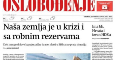 Bosanski list "Oslobođenje" danas je na naslovnoj strani objavio da je zemlja u krizi i sa robnim rezervama, te da "dok mnoge države kupuju zalihe hrane, vlasti u BiH samo prate situaciju". Takvu naslovnu stranu ni u jednim novinama u Srbiji nećemo videti dok je Aleksandra Vučića, jer odgovorno vodi državu