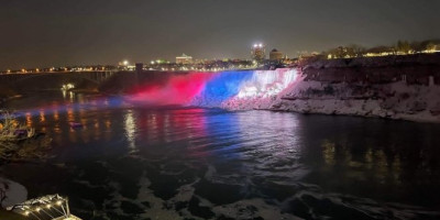 U čast Dana državnosti Srbije, sinoć su Nijagarini vodopadi u Kanadi bili osvetljeni u bojama srpske zastave