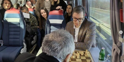 - Dok putujemo ka Merošini, partija šaha sa izuzetnim Stojanom Radenovićem. Zajedno možemo sve! - napisao je predsednik na Instagramu.
