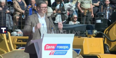 Predsednik Srbije Aleksandar Vučić govorio je danas na predizbornom skupu u Merpšini pred više od 15.000 građana koji su došli da podrže Srpsku naprednu stranku