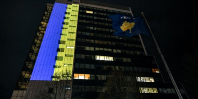 Zgrada privremene Vlade Kosova osvetljena je večeras u bojama ukrajinske zastave, a takozvani premijer Aljbin Kurti kaže da se na ovaj način građani tzv. Kosova solidarišu sa narodom Ukrajine