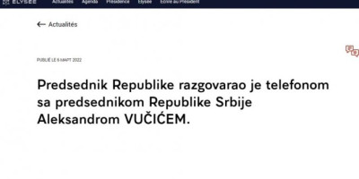 Nakon jučerašnjeg razgovora sa predsednikom Srbije, Aleksandrom Vučićem, oglasio se predsednik Francuske Emanuel Makron, a na sajtu Jelisejske palate obaveštenje je objavljeno, pored francuskog, i na srpskom jeziku