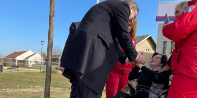 Vučić je prekinuo svoj govor, sišao sa bine i otišao da proveri kako je gospođa kojoj je ekipa Hitne pomoći ukazivala pomoć.